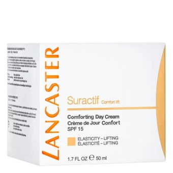 Die Lancaster Suracif Comfort Lift Comforting Day Cream mit Sonnenschutzfaktor 15 liftet und verfeinert das Hautbild und verleiht ein angenehmes Hautgefühl. Die seidige Creme mit Retinol-Matrix-Komplex unterstützt den Kampf gegen Elastizitätsverlust und sorgt für ein gestraffteres, geschmeidigeres und ebenmäßigeres Hautbild. Ideal geeignet für normale Haut und Mischhaut mit Elastizitätsverlust, Verlust an Strahlkraft, trockenen Hautpartien und tiefen Falten.