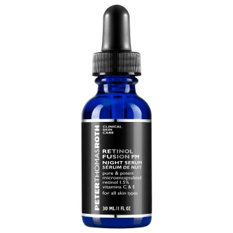 Das „RETINOL FUSION PM NIGHT SERUM“ enthält mikroverkapseltes Retinol in einer Konzentration von 1,5 %, das zeitverzögert freigesetzt wird und die Haut dadurch gleichmäßig und sanft im Schlaf peelt. Feine Linien und Falten werden reduziert, das Hautbild wird insgesamt verfeinert. Die feuchtigkeitsspendende Formel mit antioxidativ wirkendem Vitamin C und E ist für alle Hauttypen geeignet. Die Haut sieht erneuert, erfrischt und regeneriert aus. Öl- und parfümfrei.
